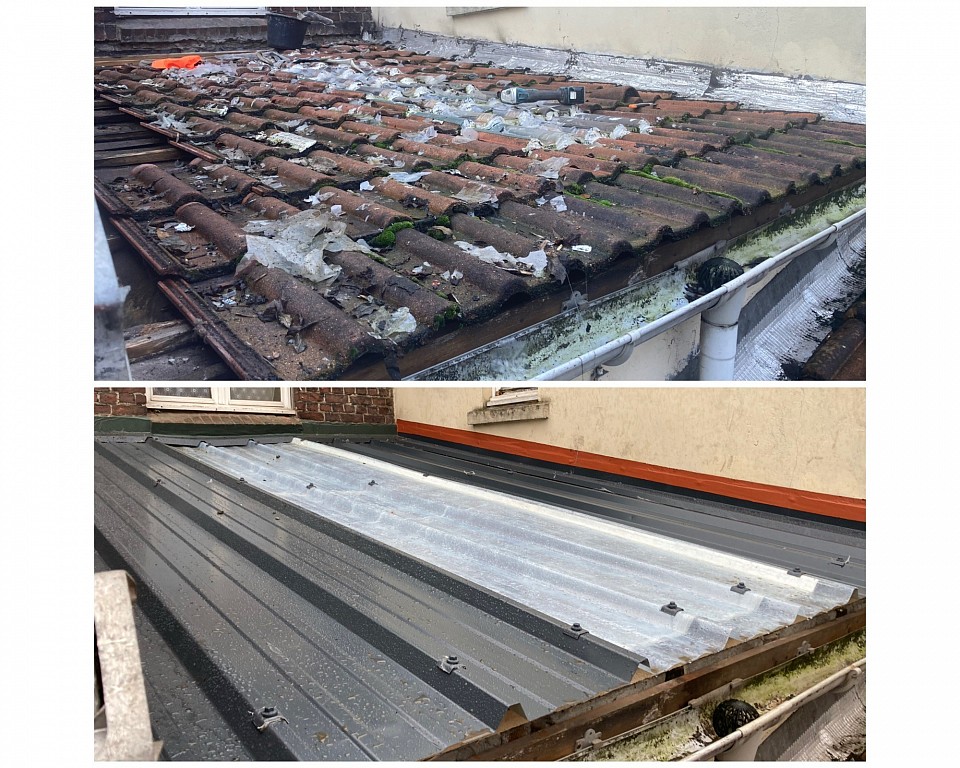 - le nettoyage suivi de la remise en peinture des tuiles.